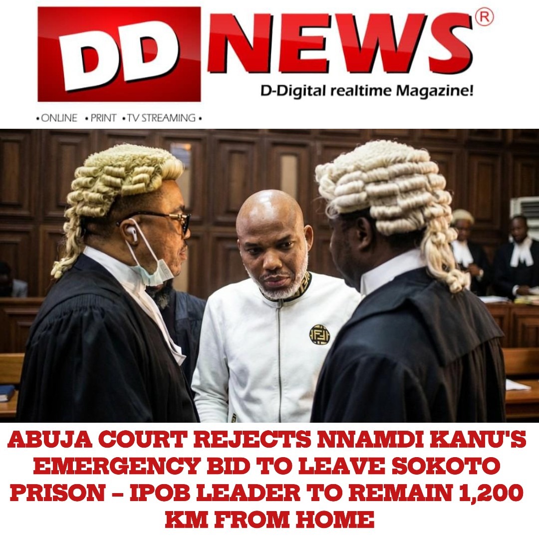 The Federal High Court in Abuja has thrown out an urgent ex-parte application filed by detained IPOB leader Nnamdi Kanu seeking immediate transfer from Sokoto Maximum Security Correctional Centre to any custodial facility in the Federal Capital Territory or neighbouring Nasarawa State.