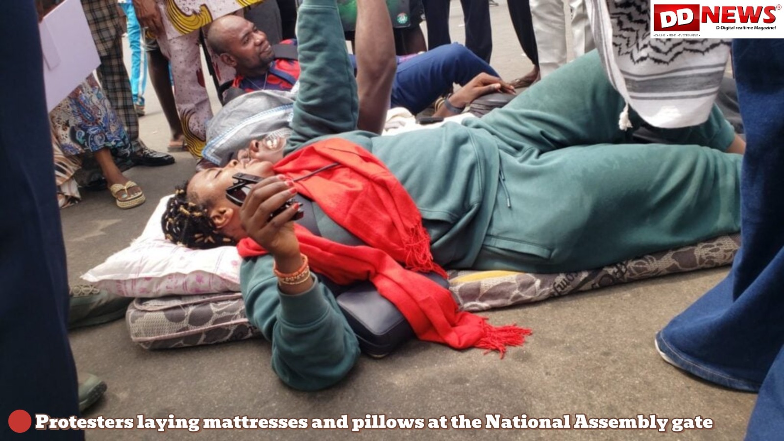The group marched from the Unity Fountain to the National Assembly gate, where they laid out mattresses on the ground, sat on them, and vowed to remain until the leadership of both chambers commits to fast-tracking and passing the mandatory electronic transmission clause.